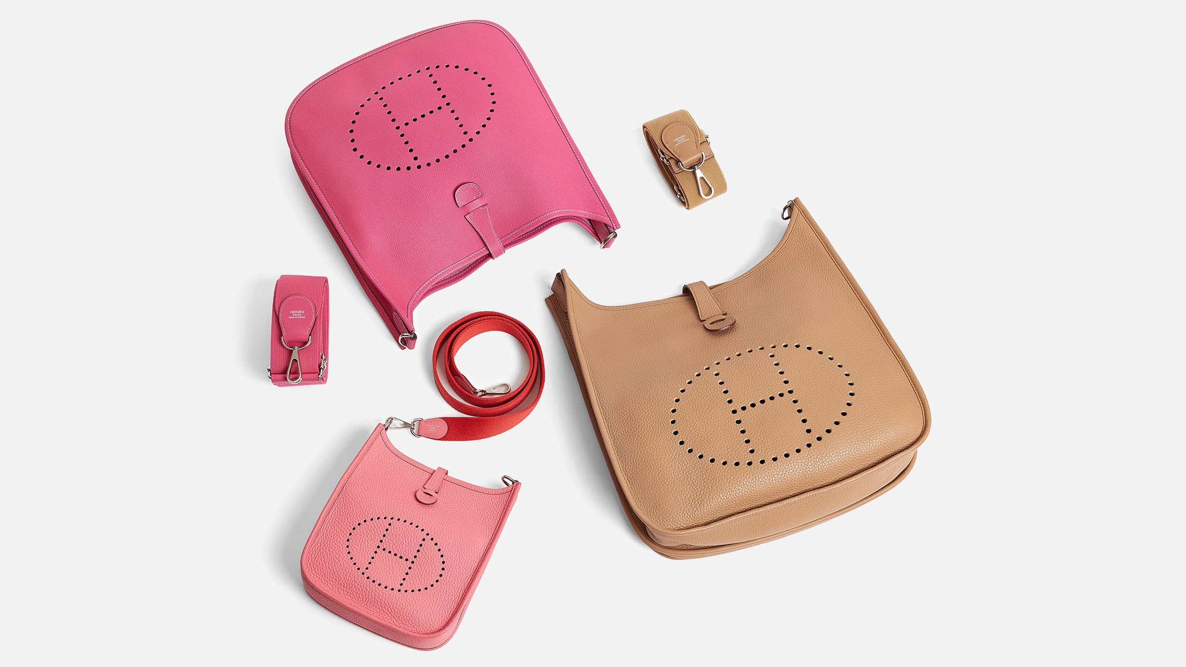 Dari segi warna dan bahan, dustbag antik selalu berwarna coklat. Dustbag yang dibuat pada era setelah tahun 2007 terbuat dari toile herringbone dan berwarna krem dan coklat muda. Akhirnya, dustbag yang lebih baru terbuat dari kain flanel katun oranye. Sementara warna dan bahan dustbag terus berubah, tali tas selalu berwarna coklat dan terbuat dari 100% katun. Seperti tas tangan itu sendiri, dustbag Hermes juga menampilkan jumlah jahitan yang presisi dan tinggi serta tanpa jahitan yang bengkok. Selain dust bag, setiap tas Hermes juga dilengkapi dengan rain cover yang lembut saat disentuh.